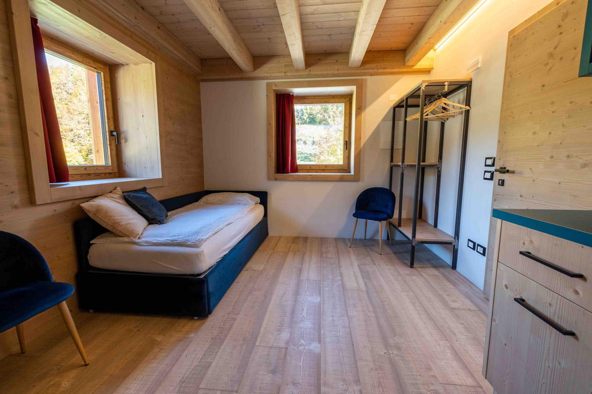 krásně architektonicky řešený malý aparthotel s romantickou pozicí na břehu jezera Lavarone