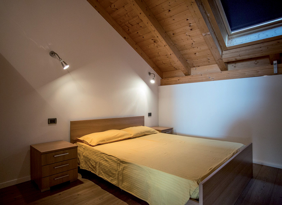 1 ložnice s manželskou postelí, 1 ložnice se 2 samostatnými lůžky či palandou, obývací pokoj s kuchyňským koutem a rozkládacím gaučem pro 2 osoby, předsíň, sociální zařízení zpravidla se sprchou, balkon; apartmán je situován ve vedlejší budově vzdálené cca 50 m