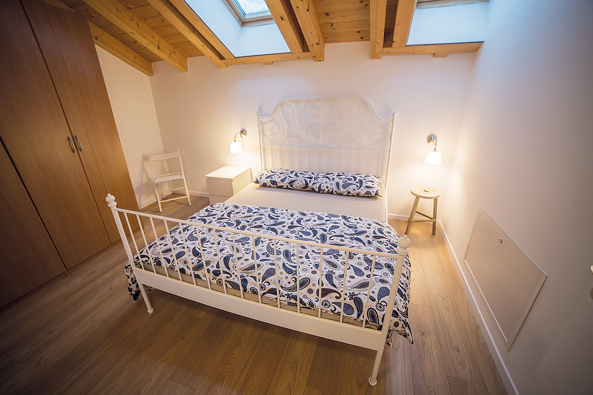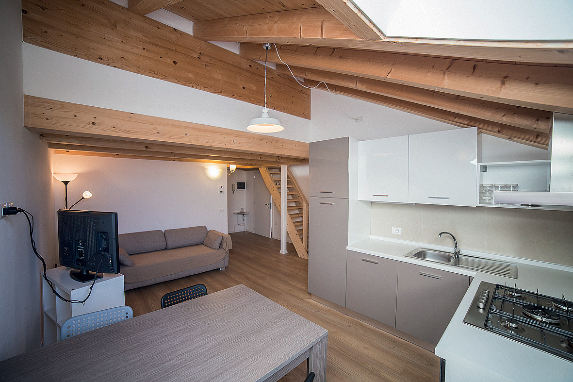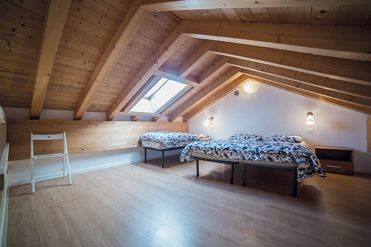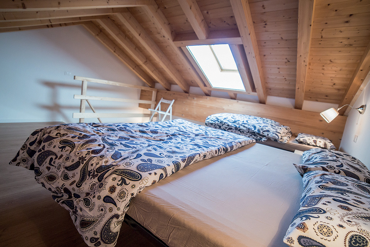 1 ložnice s manželskou postelí, 1 ložnice v neuzavřeném mezipatře s 1 či 2 samostatnými lůžky, obývací pokoj s kuchyňským koutem a rozkládacím gaučem pro 2 osoby, předsíň, sociální zařízení zpravidla se sprchou, z 50 % balkon