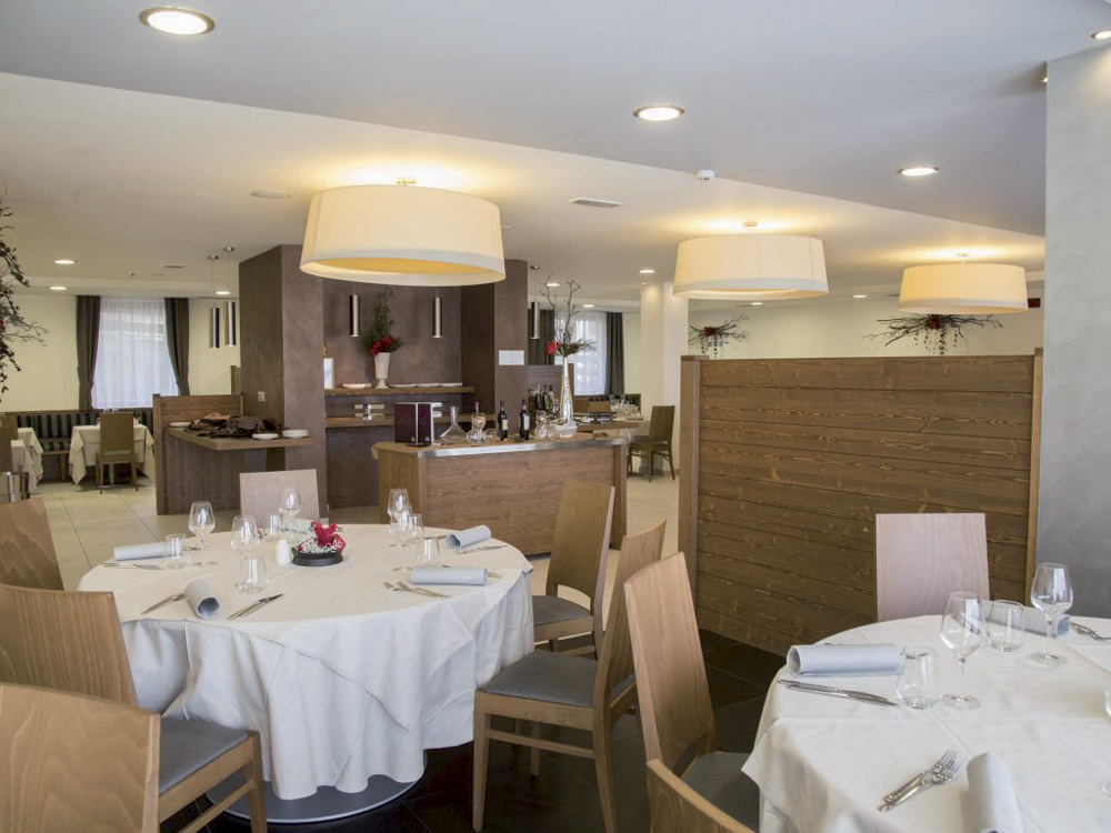 večeře - servírované menu s výběrem ze 3 teplých předkrmů, 2 hlavních jídel se 2 přílohami a 3 dezertů, studené předkrmy formou bufetu, bohatý salátový bufet, nápoje za poplatek; 1x týdně typická večeře