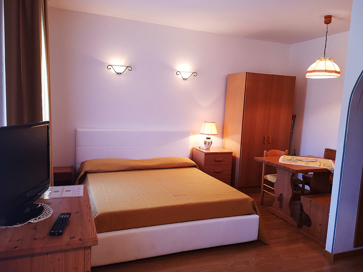 pokoj s manželskou postelí, sociální zařízení; pokoj není vybaven kuchyňským zázemím, je možnost jej připojit k apartmánu bilo 4