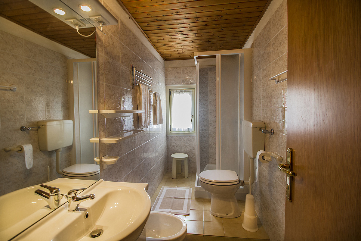 2 ložnice s manželskou postelí, obývací pokoj s kuchyňským koutem a rozkládacím gaučem pro 1 osobu, sociální zařízení, z 50% balkon; 1 apartmán se samostatným vstupem z exteriéru