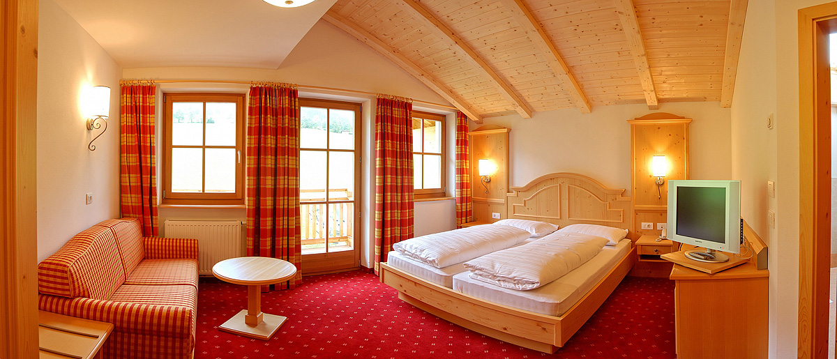 25 až 28 m² - pokoj s manželskou postelí a rozkládacím gaučem pro 2 osoby, sociální zařízení, balkon; maximální obsazenost pokoje jsou 3 dospělé osoby či 2 dospělé osoby a 2 děti do nedovršených 16 let