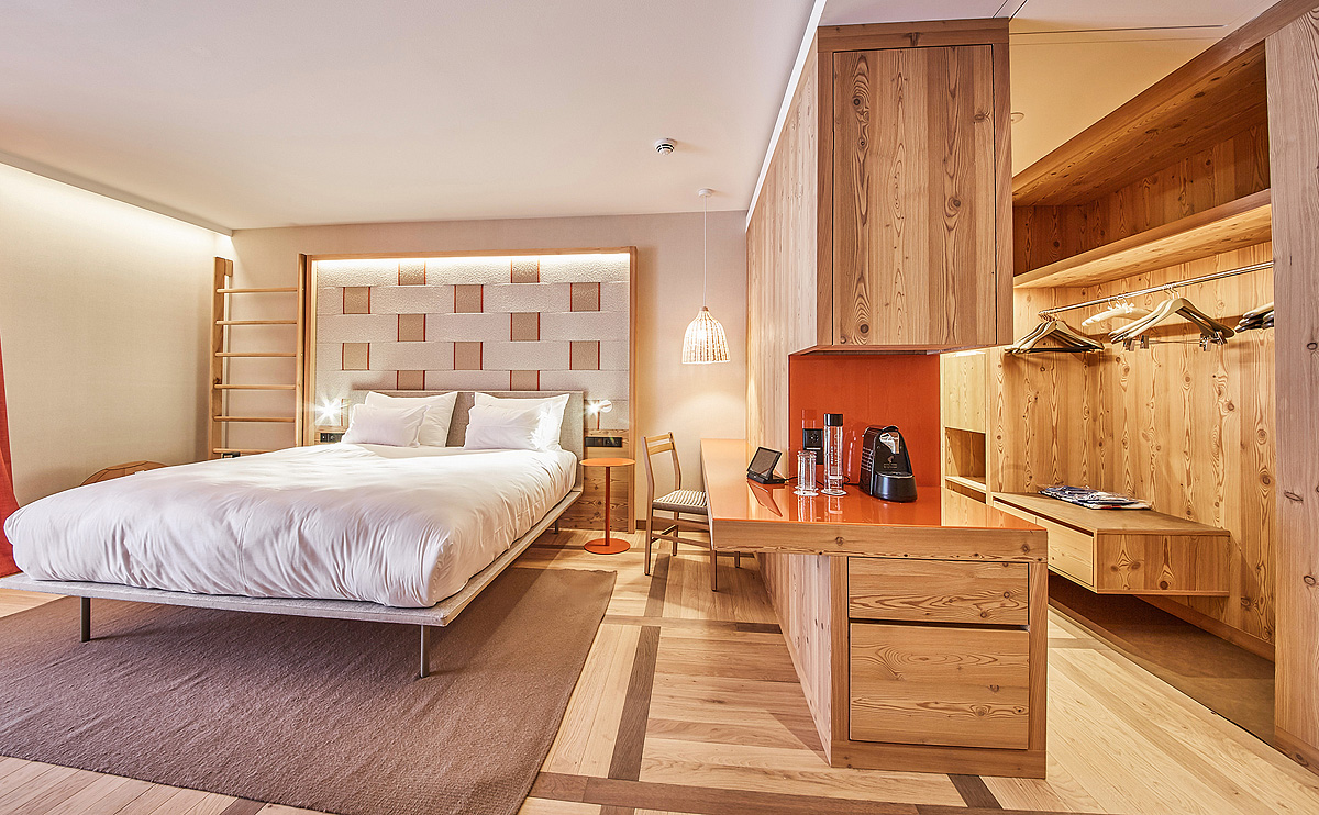 60 m² - pokoj s manželskou postelí a 1 částečně odděleným samostatným lůžkem, sociální zařízení se sprchou a vanou, balkon, terasa s panoramatickou saunou; maximální obsazenost pokoje jsou 2 dospělé osoby a 2 děti do nedovršených 14 let