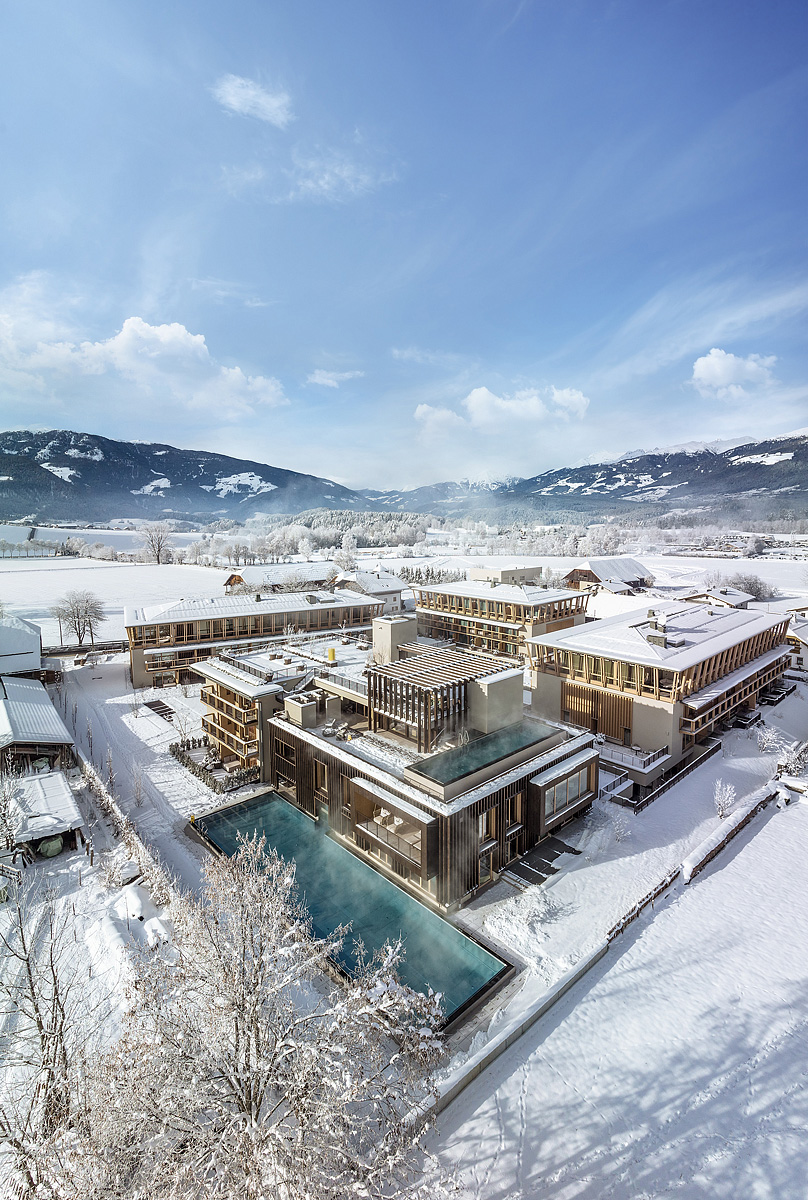 4-podlažní Acquapura Mountain Spa na ploše 1.400 m 2 – venkovní vyhřívaný bazén 25 x 5 m, panoramatický venkovní vyhřívaný bazén#, panoramatická sauna#, biosauna, 2x relaxační koutek s lehátky pro rodiny, 3x relaxační koutek s lehátky#, Private Spa#*, masáže#* a kosmetické služby#*, posilovna# ,tělocvična#, služby označené # mohou využívat osoby od 18 let