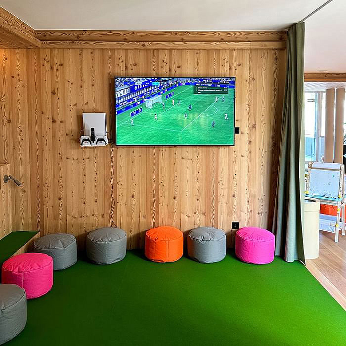 recepce / lobby, restaurace vyhrazená pro hotelové hosty, 2x bar, společenská místnost s TV sat., 4x kongresový sál až pro 200 osob, velká dětská herna, knihovna, sluneční terasa s posezením a lehátky, zahrada, wi-fi připojení k internetu, služby hotelové prádelny, úschovna lyží a lyžařských bot, výtah, vyhrazené parkoviště, garážová stání / 2x nabíjecí stanice* (pomalé do 22 kW)