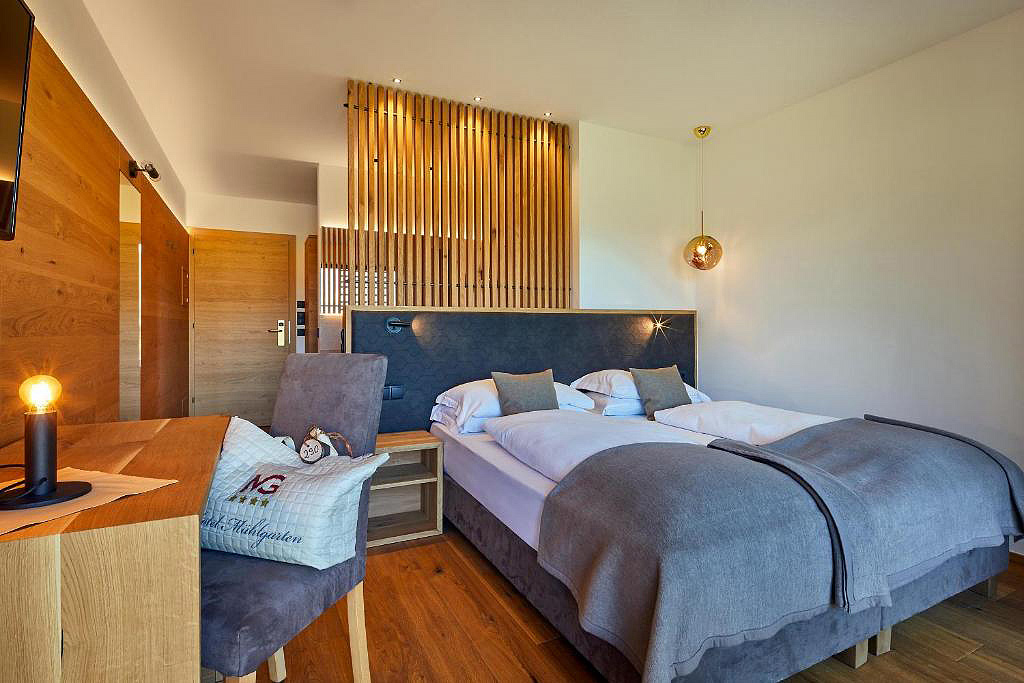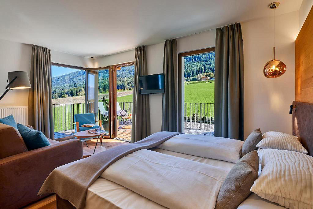 40 až 45 m² - pokoj s manželskou postelí a rozkládacím gaučem pro 2 osoby, sociální zařízení se sprchou či vanou, balkon