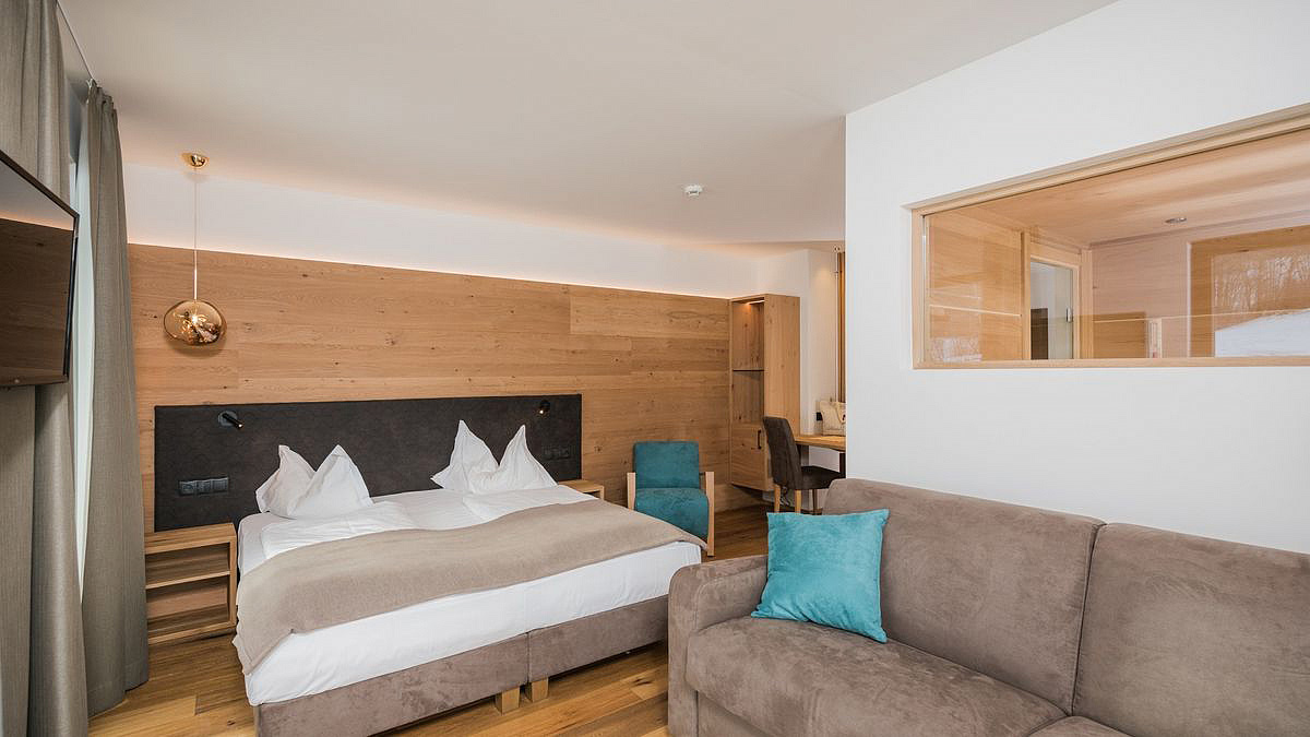 29 až 37 m² - pokoj s manželskou postelí a rozkládacím gaučem pro 2 osoby, sociální zařízení se sprchou či vanou, balkon
