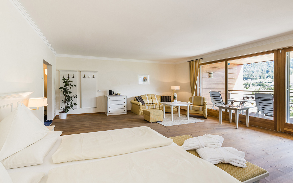 32 m² - pokoj s manželskou postelí či 2 samostatnými lůžky a rozkládacím gaučem pro 2 osoby, sociální zařízení, balkon