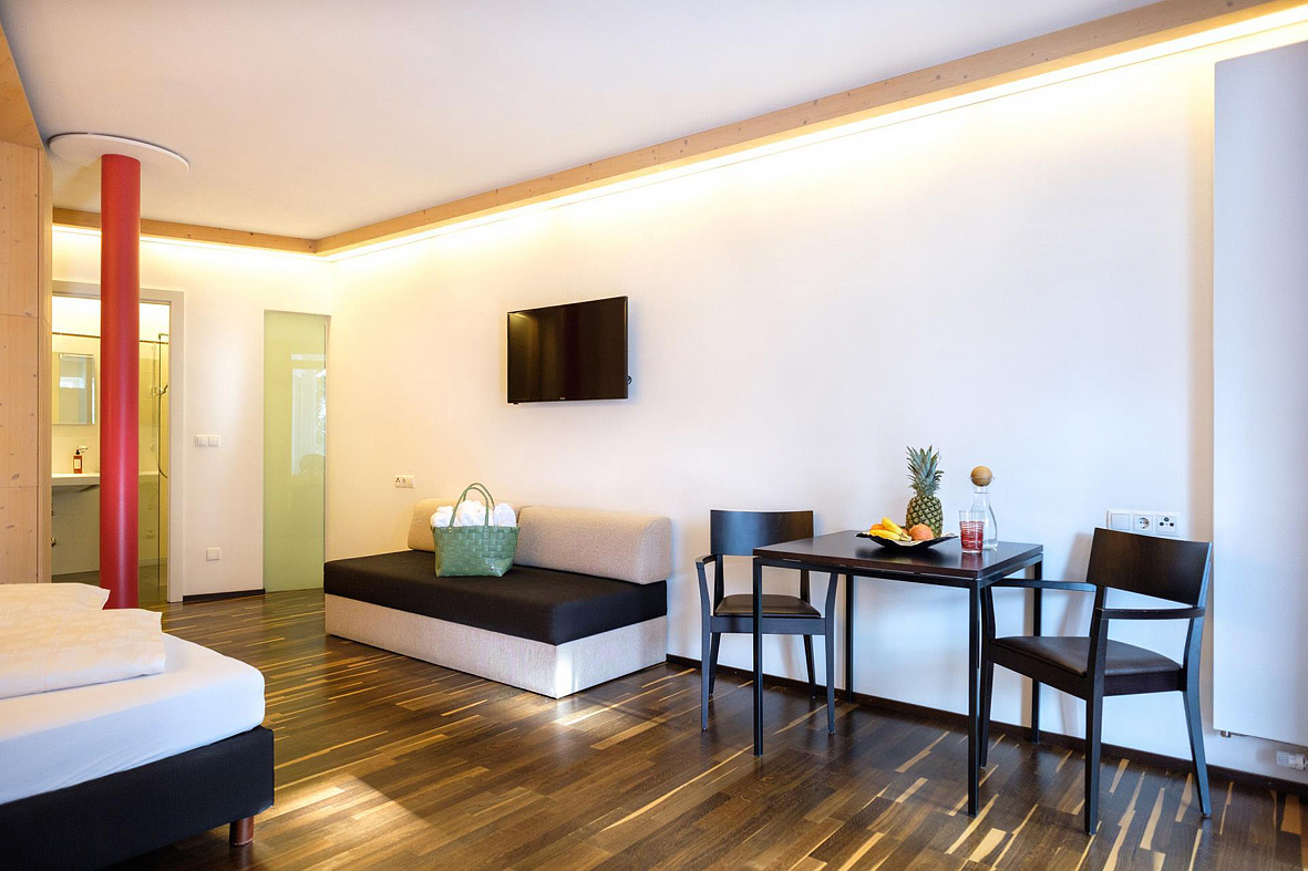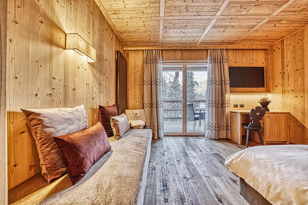 TV sat., telefon, fén, trezor, wi-fi připojení k internetu, nápojová lednička (jen u pokojů Nido 2, Alma 2 a Alpin SPA Suite 2/3/4/), župany do wellness