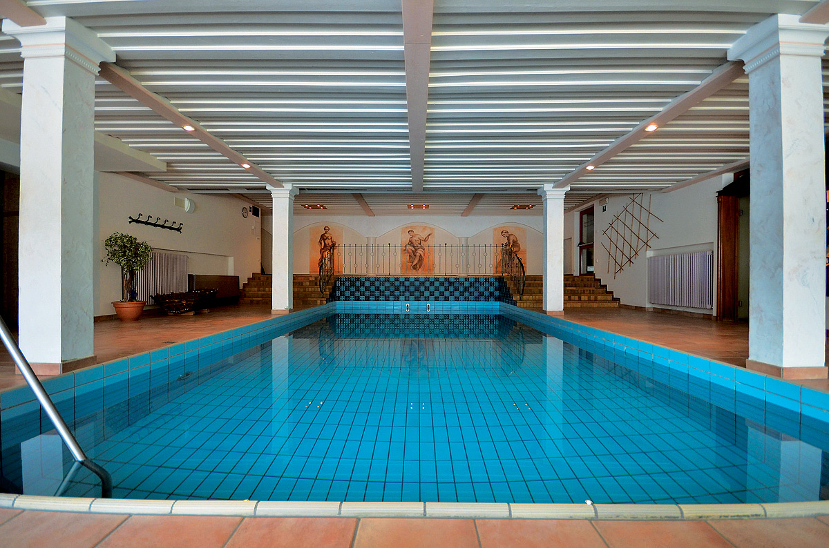 bazén 8 x 4 m s protiproudem a lehátky, sauna#, rodinná sauna, pára#, infrakabina#, 2x multifunkční sprcha#, Kneippův chodník#, relaxační koutek s lehátky#, senná lázeň#, masáže*#, kosmetické služby*#, posilovna