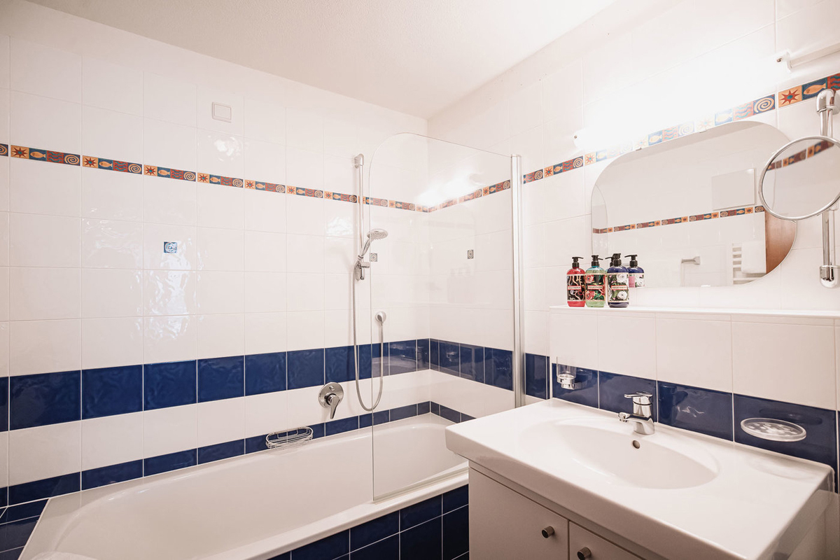 55 m² – 1. podlaží apartmánu: obývací pokoj s kuchyňským koutem a manželskou postelí, sociální zařízení se sprchou, balkon; 2. podlaží apartmánu: 1 ložnice s manželskou postelí, 1 ložnice s manželskou postelí (140 cm)