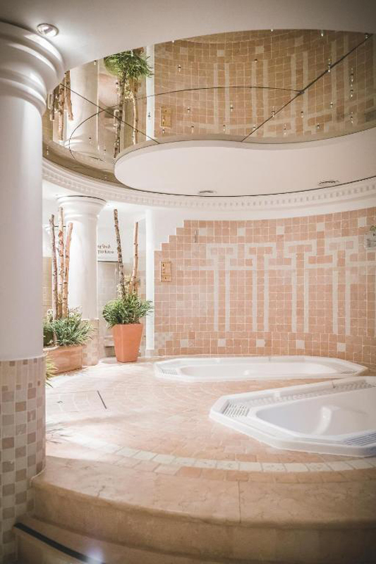 venkovní vyhřívaný bazén 17 x 4 m, sauna#, tepidárium#, 2x hydromasážní vana*# (žeton), posilovna#, 2x relaxační koutek# s lehátky, služby označené # mohou využívat jen osoby od 15 let
