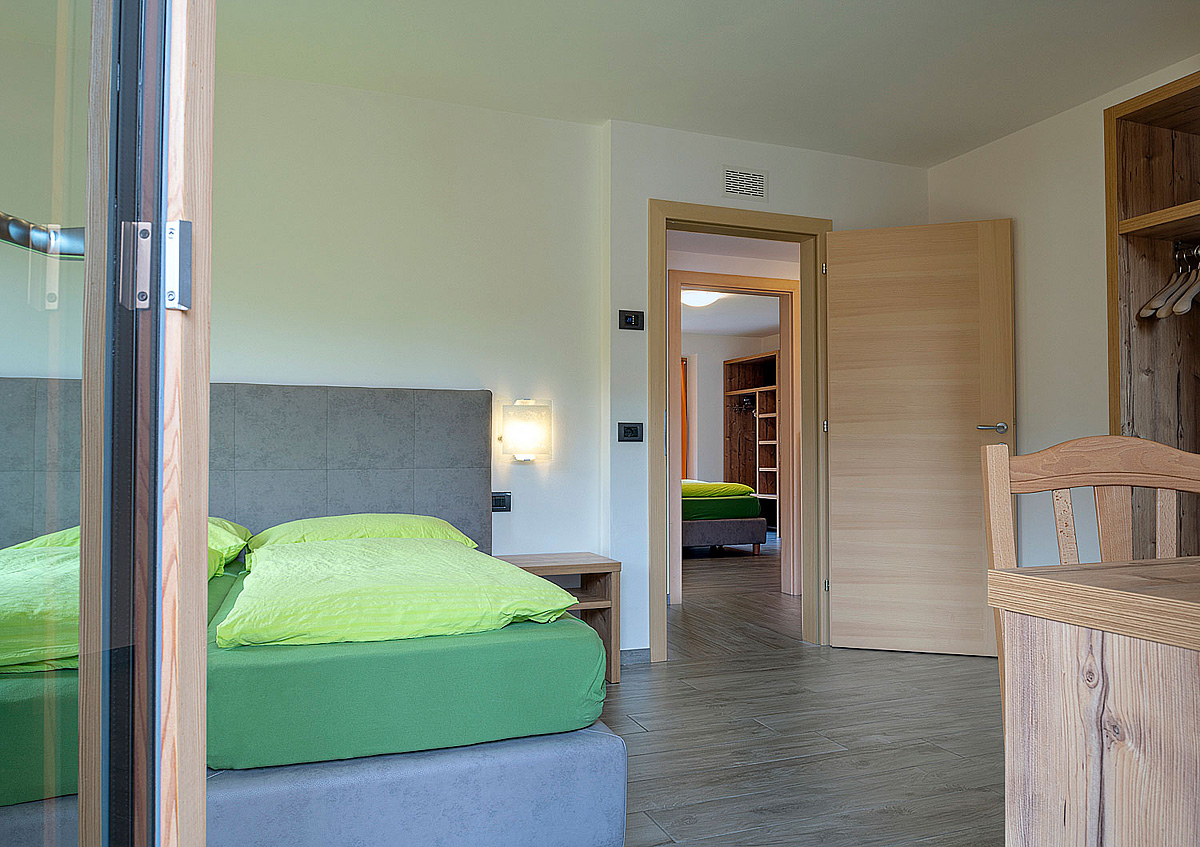 trilo 4 - 58 až 68 m² - 1 ložnice s manželskou postelí, 1 ložnice s manželskou postelí či 2 samostatnými lůžky, obývací pokoj s kuchyňským koutem, 2x sociální zařízení zpravidla se sprchou; apartmány se nachází v přízemí