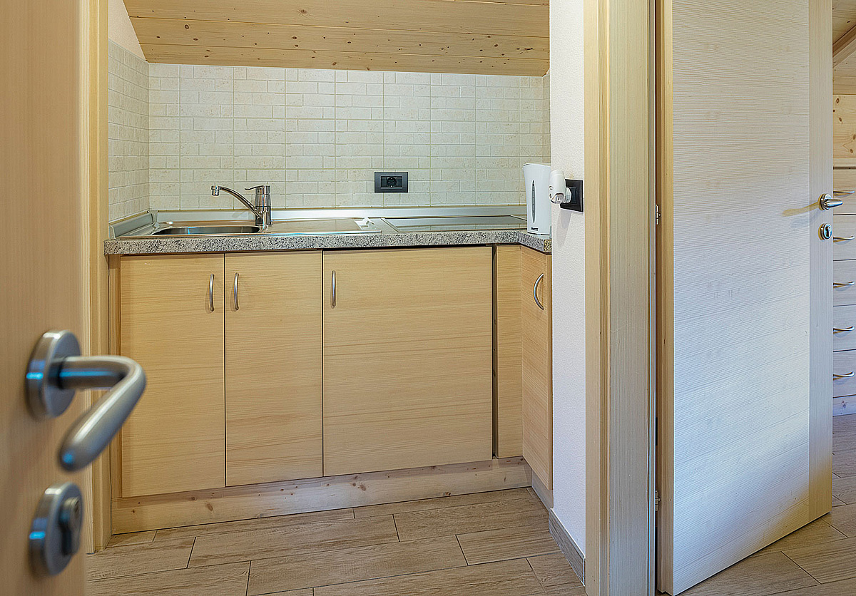 mono 2 - 28 m² - obývací pokoj s kuchyňským koutem a manželskou postelí nebo 2 samostatnými lůžky, sociální zařízení se sprchou či vanou, zřídka balkon; některé apartmány jsou situovány v podkroví