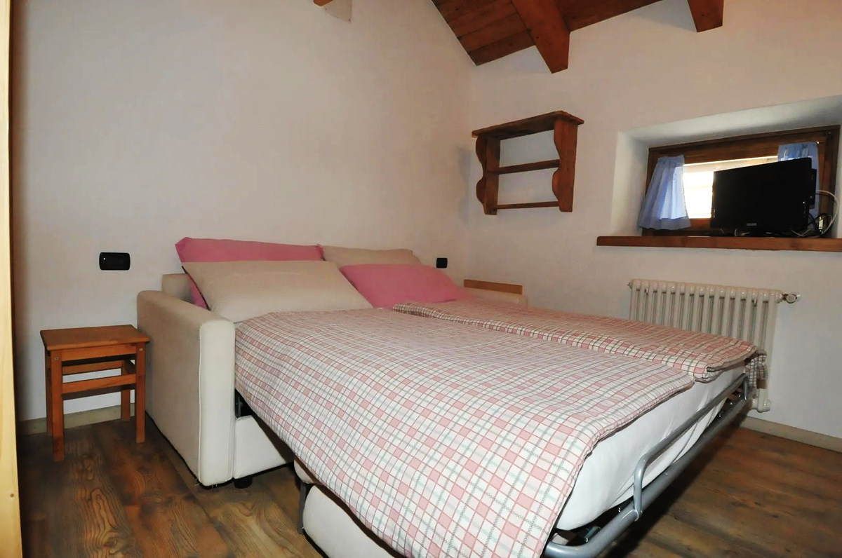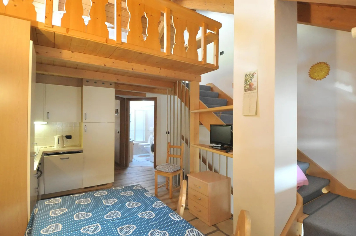 50 m² - 1 ložnice s rozkládacím gaučem, obývací pokoj s kuchyňským koutem, v neuzavřeném patře manželská postel, sociální zařízení s vanou, bez balkonu; dvoupatrový apartmán ve 2. patře a podkroví