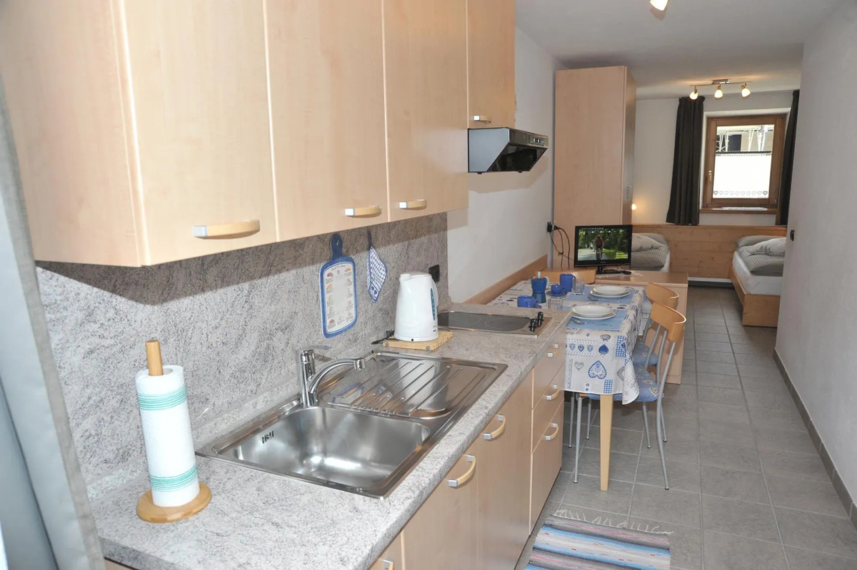 35 m² - obývací pokoj s kuchyňským koutem a 2 samostatnými lůžky, sociální zařízení s vanou, bez balkonu; apartmán se nachází v 1. patře
