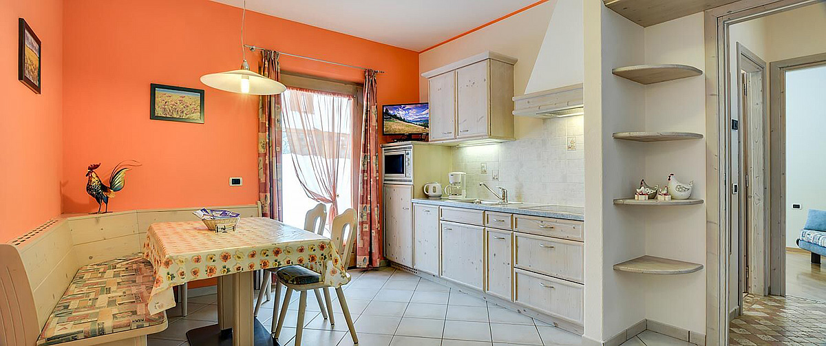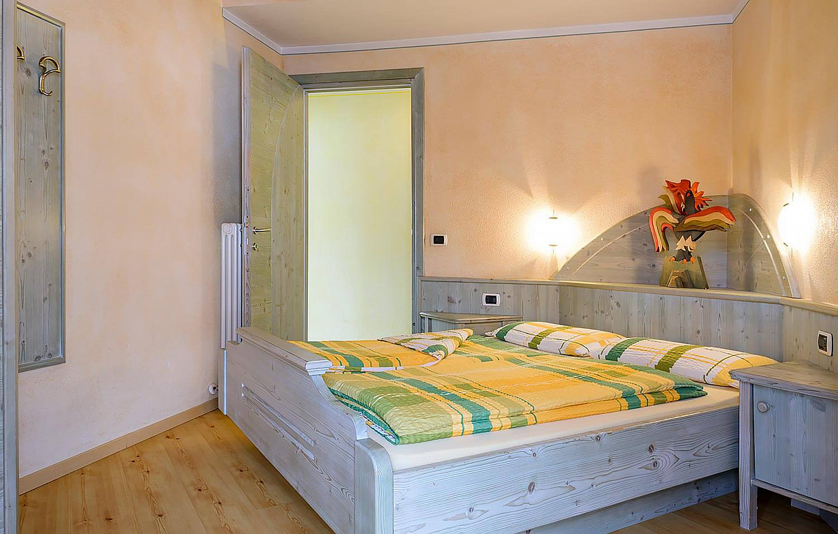 1 ložnice s manželskou postelí a případně 1 rozkládacím lůžkem, obývací pokoj s kuchyňským koutem a rozkládacím gaučem pro 2 osoby, sociální zařízení se sprchou a vanou, apartmán v přízemí