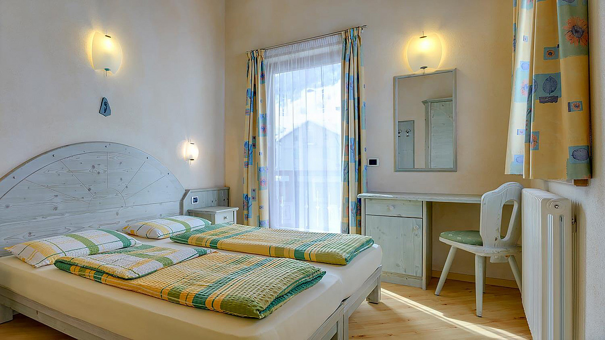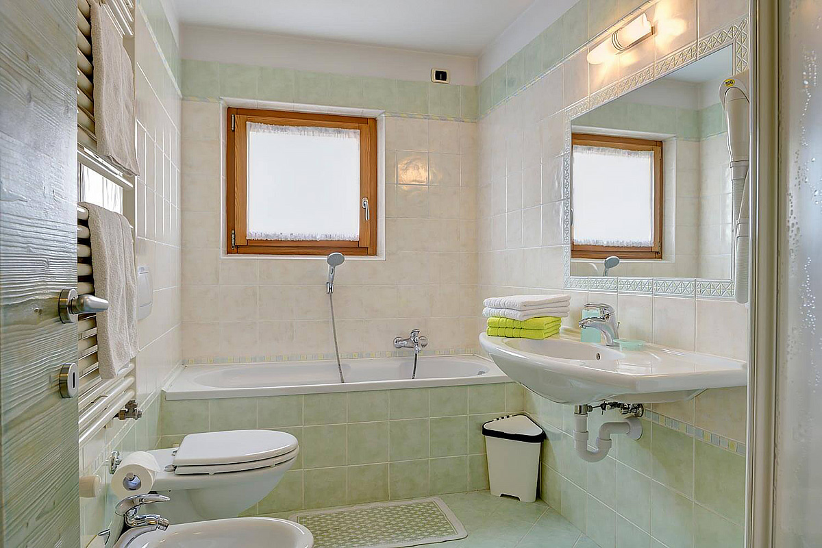 1 ložnice s manželskou postelí, 1 ložnice se 2 samostatnými lůžky, obývací pokoj s kuchyňským koutem a rozkládacím gaučem pro 2 osoby, sociální zařízení se sprchou a vanou; apartmán v přízemí
