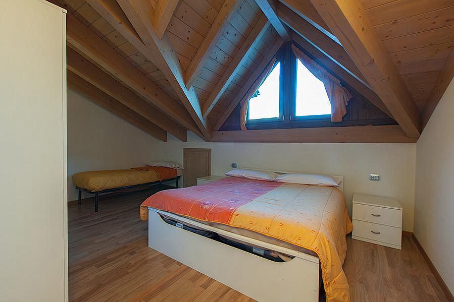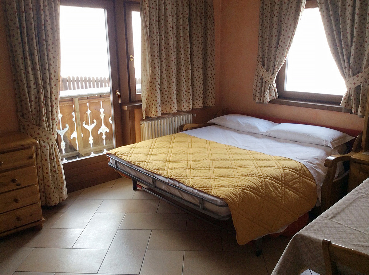 1 ložnice s manželskou postelí a jedním samostatným lůžkem, 1 ložnice se dvěma samostatnými lůžky, obývací pokoj s kuchyňským koutem a rozkládacím gaučem pro 2 osoby, sociální zařízení zpravidla se sprchou, balkon; apartmán je situován v podkroví