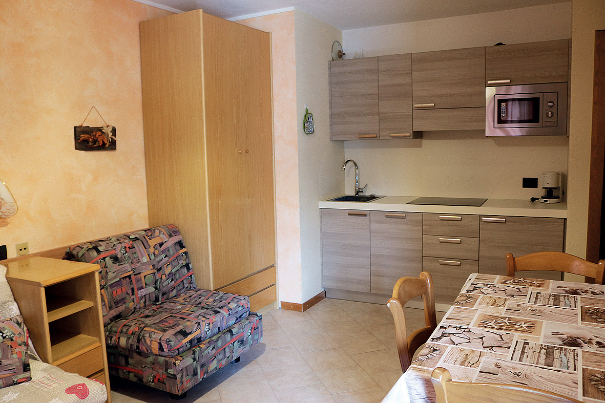 quadrilo 6 - 59 až 65 m² - 1. podlaží apartmánu: 1 ložnice s manželskou postelí, obývací pokoj s částečně oddělenou kuchyňkou, sociální zařízení se sprchou, balkon; 2. podlaží apartmánu: 2 ložnice se 2 samostatnými lůžky, sociální zařízení (s umyvadlem a WC)