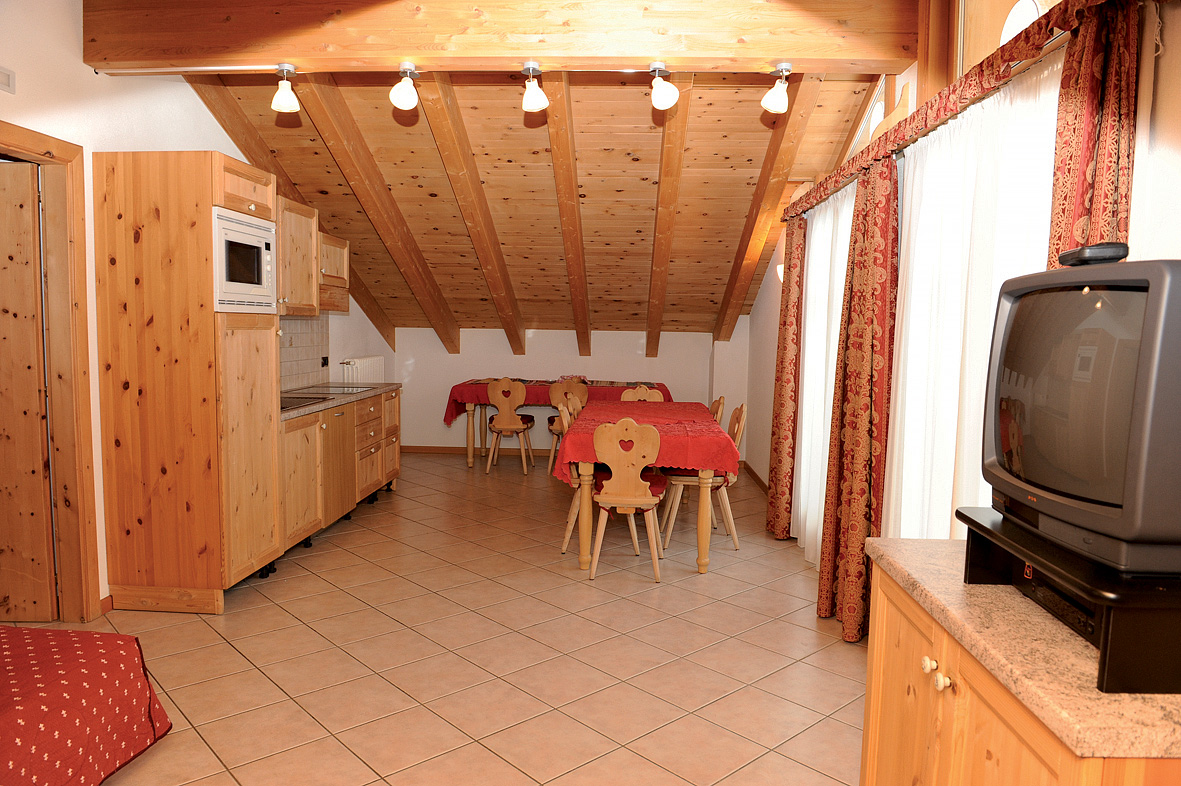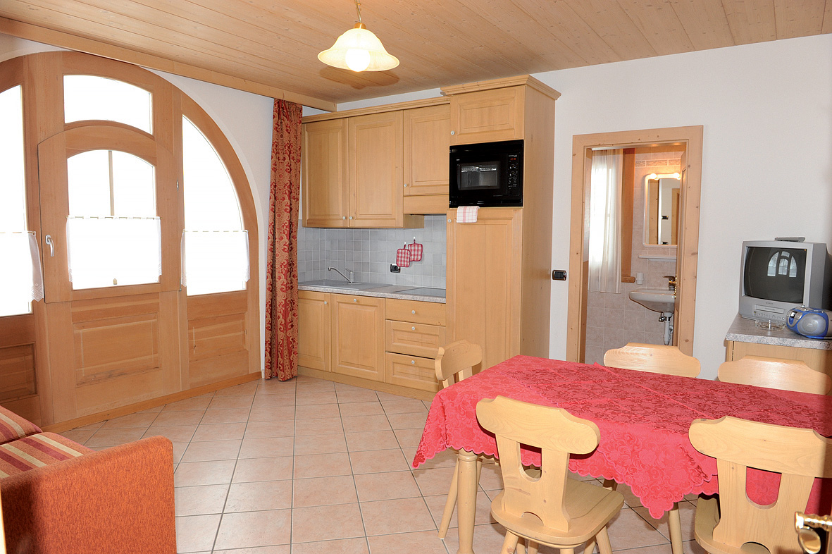 bilo 4 typ A - 38 m² - 1 ložnice s manželskou postelí, obývací pokoj s kuchyňským koutem a rozkládacím gaučem pro 2 osoby či 2 rozkládacími gauči pro 1 osobu, sociální zařízení