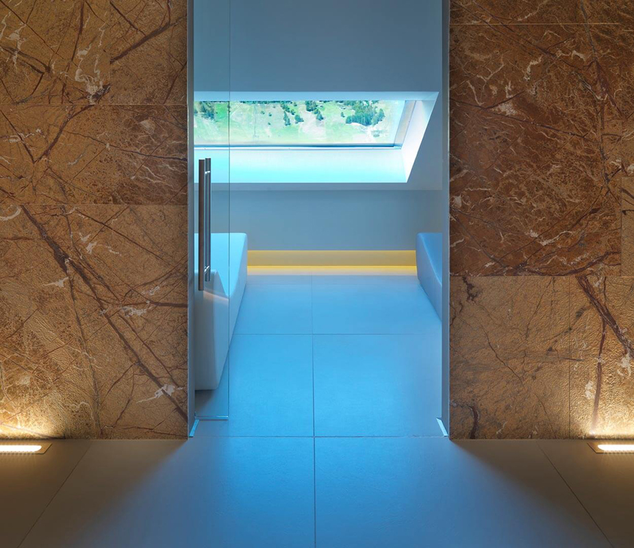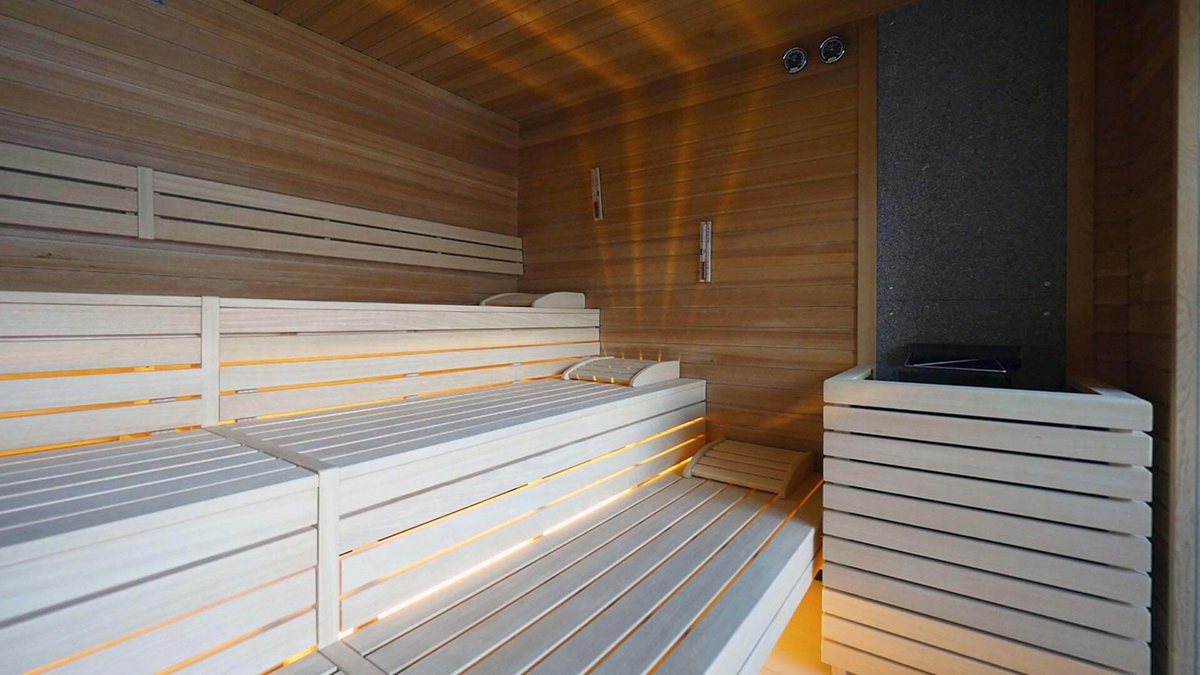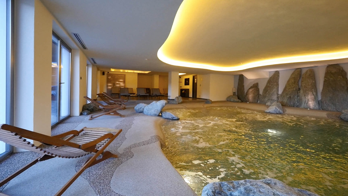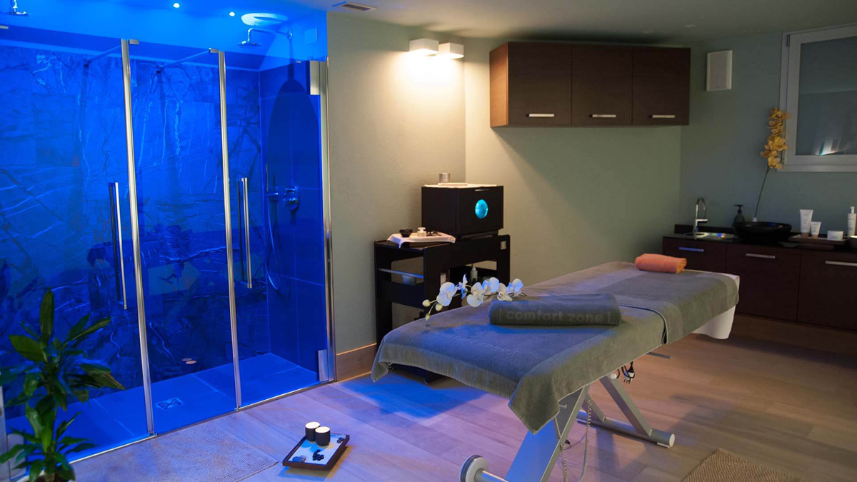 bazén atypického tvaru se slanou vodou a vířivkou*, sauna*, pára*, relaxační koutek s lehátky*, posilovna, masáže*, kosmetické služby*