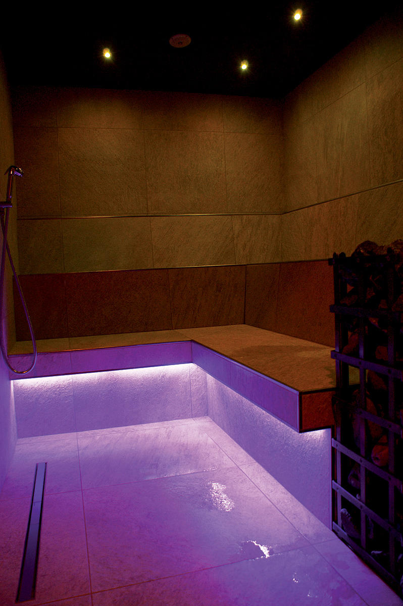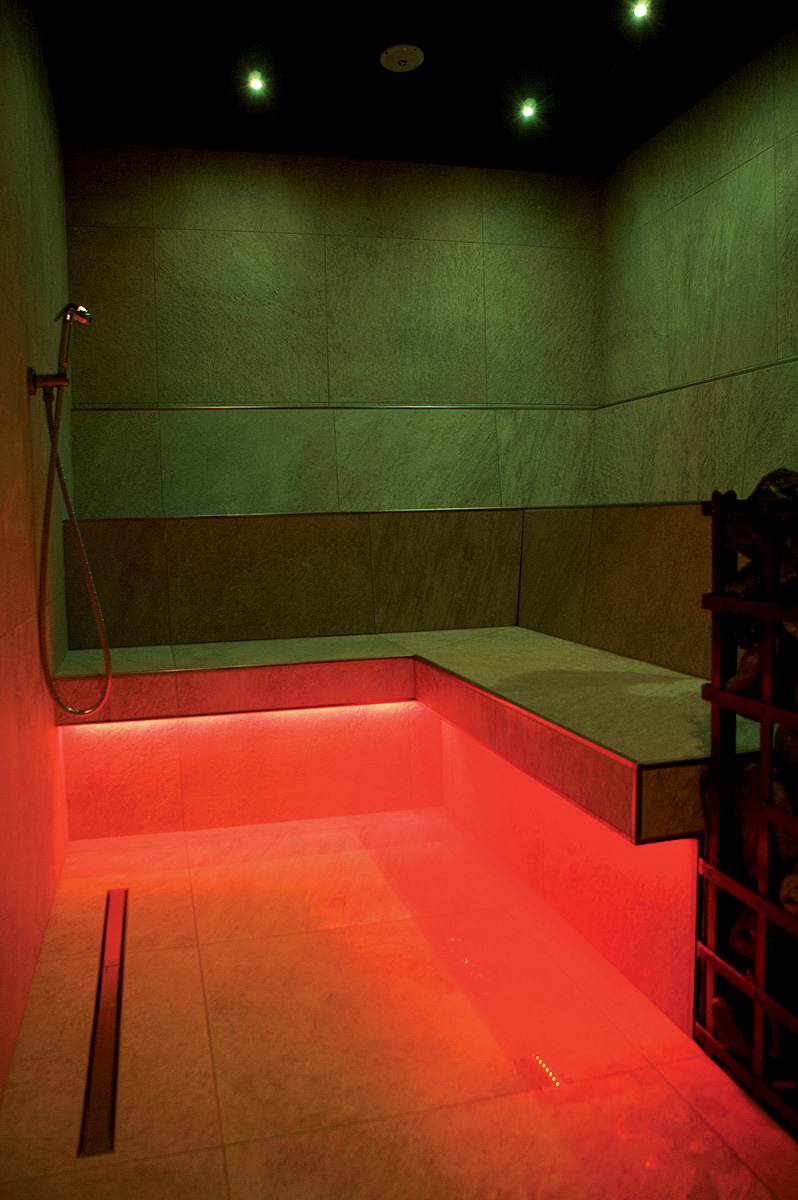 bazén 14 x 5 m, vířivka až pro 6 osob, finská sauna#, biosauna#, aromatická pára#, bazén s ledovou vodou#, multifunkční sprcha#, horské sluníčko#*, relaxační koutek s lehátky a bylinkovými čaji, masáže#*, kosmetické služby#*, posilovna#, stolní fotbal; služby označené#nemohou využívat děti do 14 let