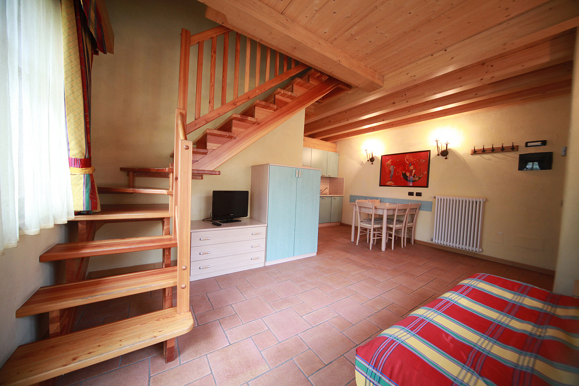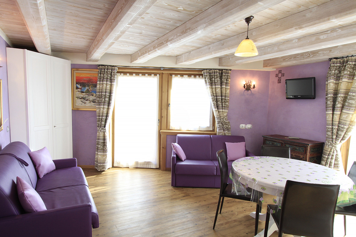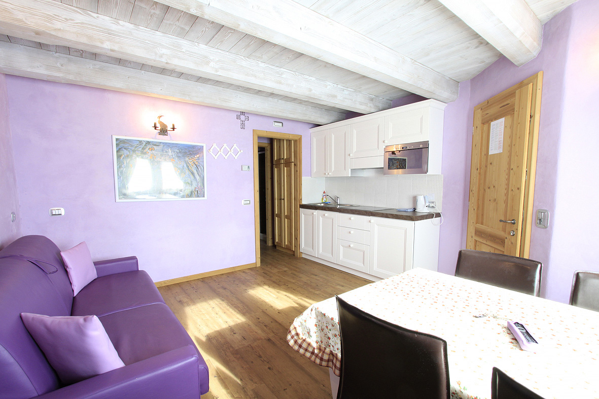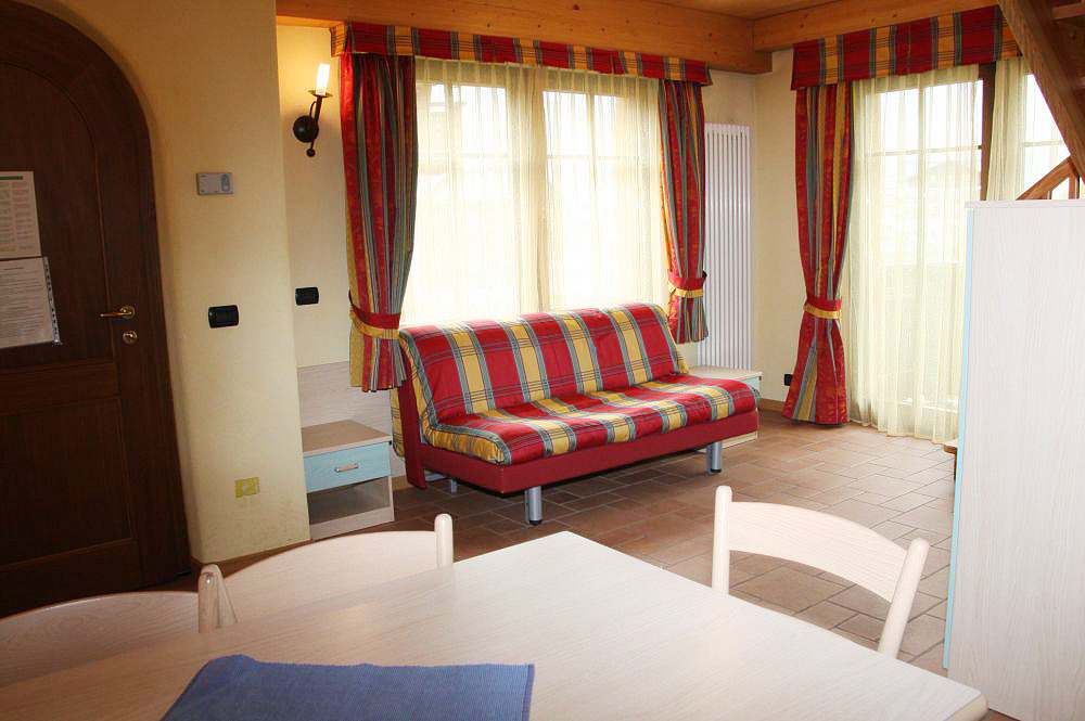 1 ložnice s manželskou postelí, 1 ložnice se 2 samostatnými lůžky, obývací pokoj s kuchyňským koutem a rozkládacím gaučem pro 2 osoby, sociální zařízení