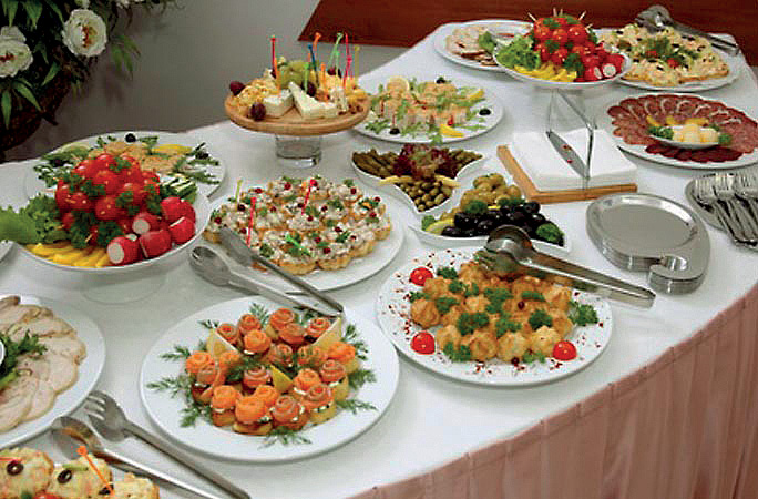 večeře - formou servírovaných předkrmů, výběr ze 2 až 3 prvních chodů, 2 až 3 hlavních jídel, příloh, salátů, dezertů či ovoce, nápoje za poplatek