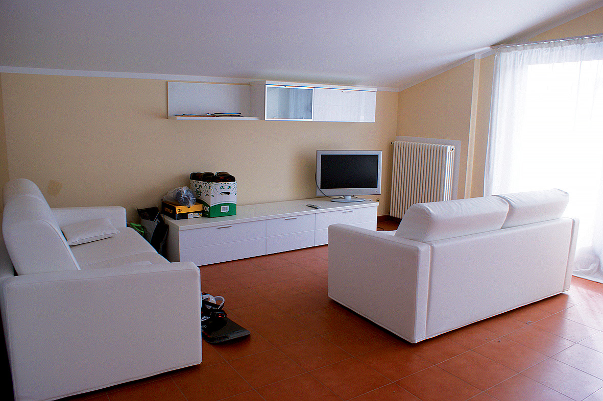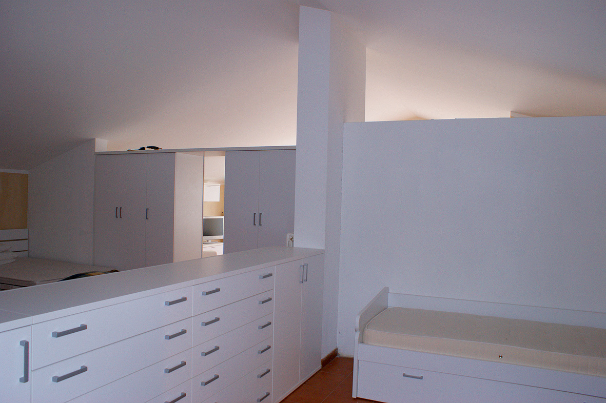 90 m² - velmi prostorný obývací pokoj s kuchyňským koutem a sedací soupravou, skříní částečně oddělená ložnice se 4 samostatnými lůžky a rozkládacím gaučem pro 2 osoby, 2x sociální zařízení, balkon; bez garážového stání