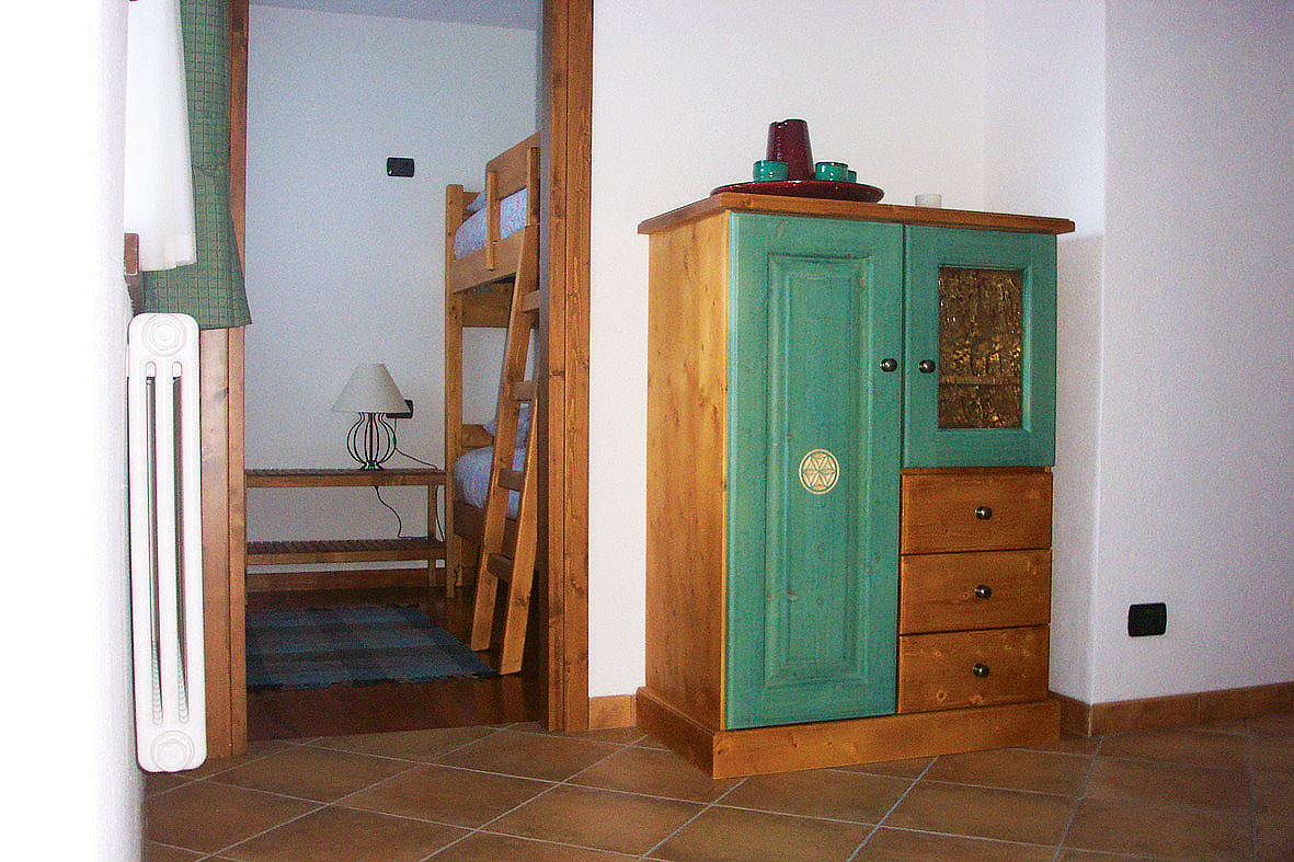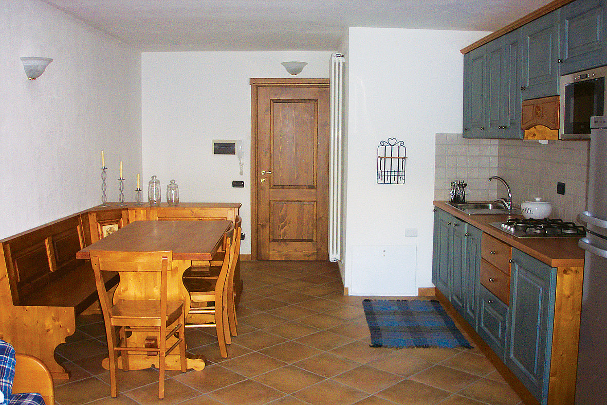 trilo 6 - 55 až 60 m² - 1 ložnice s manželskou postelí či 2 samostatnými lůžky, 1 menší ložnice s palandou, obývací pokoj s kuchyňským koutem a rozkládacím gaučem pro 2 osoby, sociální zařízení, balkon (s výjimkou 1 apartmánu)