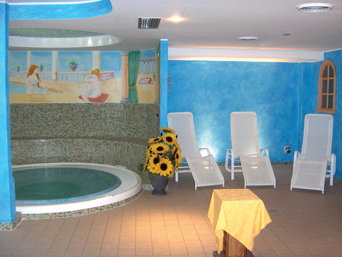 vířivka#* až pro 6 osob, finská sauna#*, turecká a římská sauna#*, pára#*, termárium#*, multifunkční sprcha#*, vertikální solárium#*, relaxační koutek#* s lehátky, vyhřívanými vodními lůžky, masáže*, kosmetické služby*, šipky, stolní tenis; služby označené # mohou využívat děti až od 16 let; v rámci relaxačního centra jsou zdarma ručníky, osušky a jednorázové pantofle (z hygienických důvodů povinné), voda a bylinkové čaje
