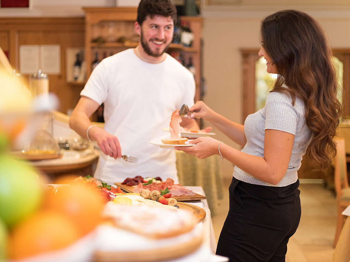 servírované menu s výběrem ze 2 teplých předkrmů a 3 hlavních jídel s přílohou, studené předkrmy a saláty formou bufetu, servírovaný dezert, nápoje za poplatek