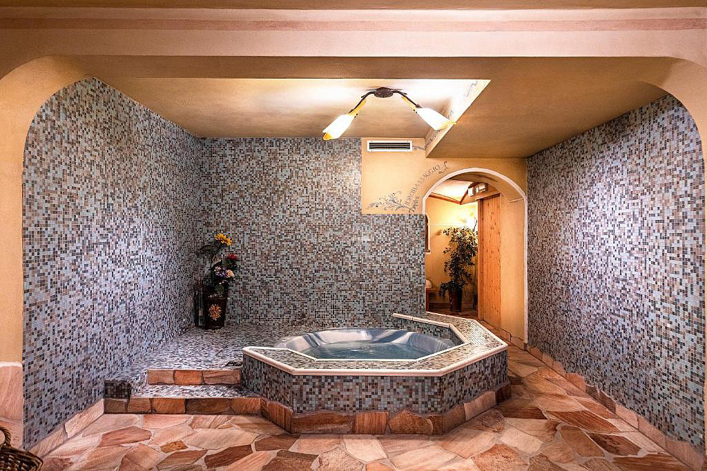 bazén, vířivka#, finská sauna#, středozemní sauna#, aromatická pára#, multifunkční sprcha#, relaxační koutek s lehátky#, masáže*, kosmetické služby*; služby označené # mohou využívat děti až od 16 let