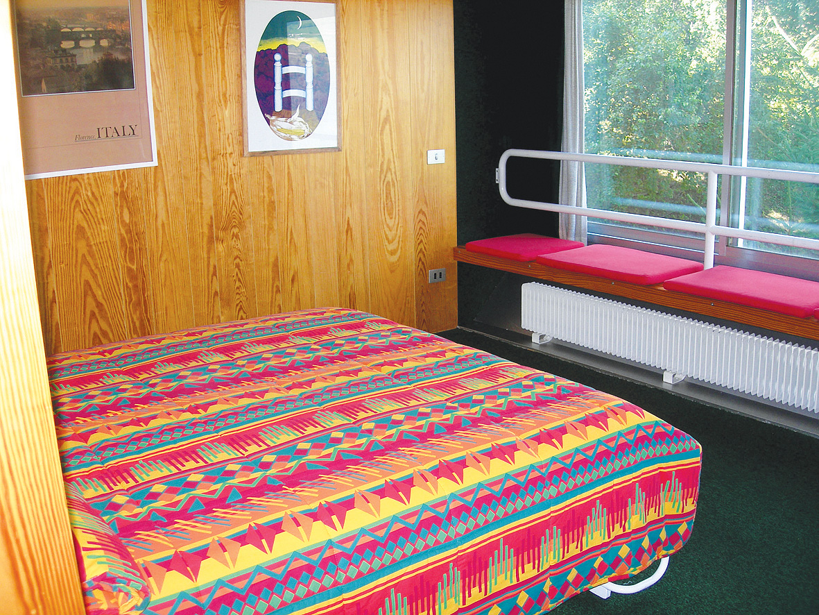 trilo 6 - 48 m² - 1 ložnice s manželskou postelí s oddělitelnými lůžky uzavřená zašupovacími dveřmi typu "harmonika" či oddělená dřevěnou stěnou, 1 ložnice se 2 samostatnými lůžky či palandou uzavřená zašupovacími dveřmi typu "harmonika" či oddělená dřevěnou stěnou, obývací pokoj s částečně odděleným kuchyňským koutem a skříňovou manželskou postelí, sociální zařízení s vanou