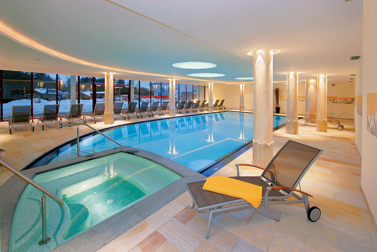 Acquapura SPA o velikosti 1.300 m² - bazén 15 x 6 m s vířivkou až pro 8 osob, dětský bazének, finská sauna#, biosauna#, aromatická pára#, infrakabina#, hydromasážní sprcha, horizontální a vertikální solárium#*, relaxační koutek# s lehátky, masáže*, kosmetické služby*, kosmetické služby* pro děti, velká posilovna, stolní tenis, stolní fotbal; služby označené # mohou využívat jen osoby od 14 let; v rámci relaxačního centra jsou zdarma nabízeny též ručníky, osušky a voda