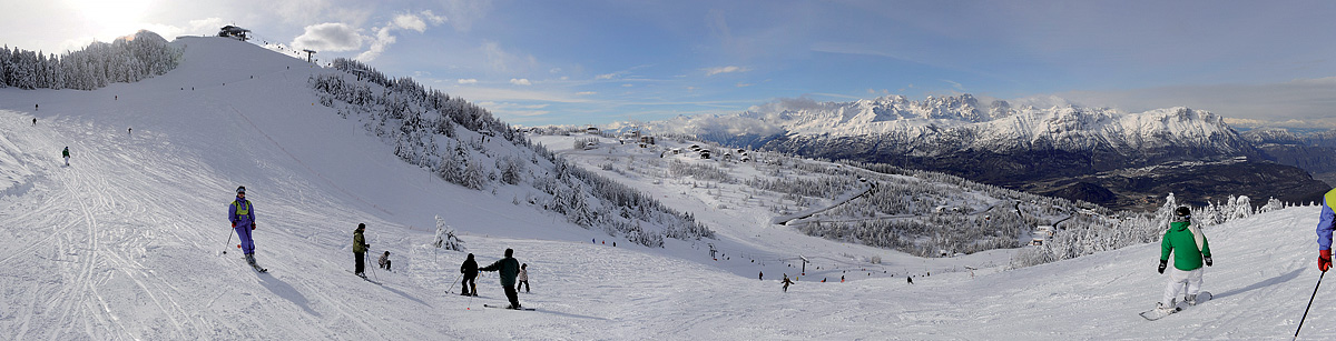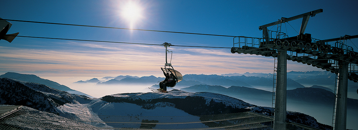 platí pro skiareál Monte Bondone; v rámci 6denního skipasu možnost lyžovat 1 den na Paganelle a 1 den ve Folgarii