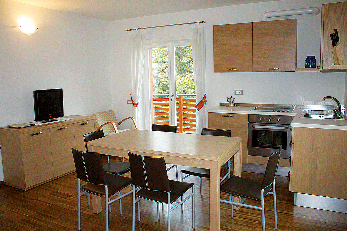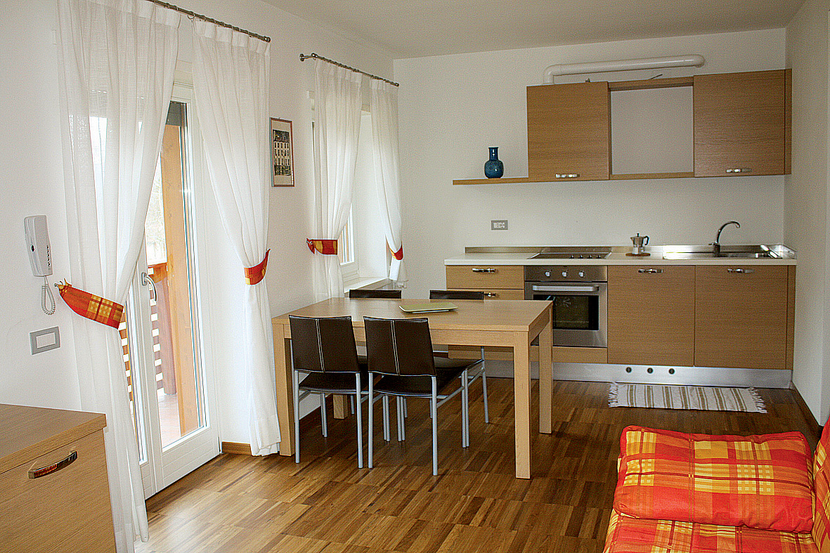 trilo 6 - 45 až 50 m² - 1 ložnice s manželskou postelí, 1 ložnice s manželskou postelí či 2 samostatnými lůžky, obývací pokoj s kuchyňským koutem a rozkládacím gaučem pro 2 osoby, sociální zařízení, balkon