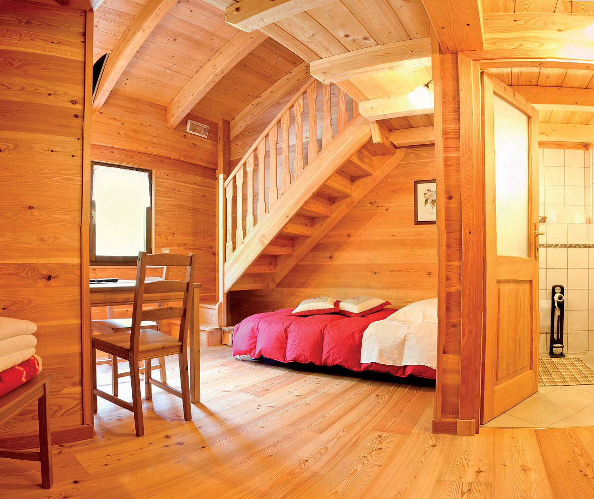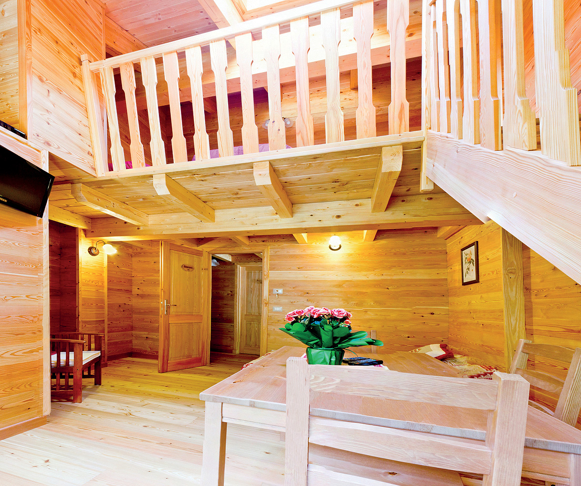 romantická atmosféra horské farmy s útulnými, dřevem obloženými apartmány