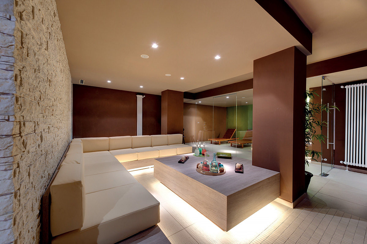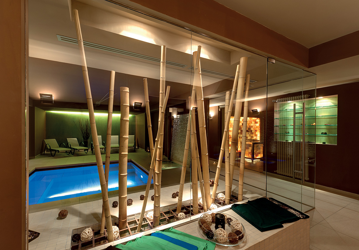 vířivka až pro 8 osob, finská sauna, pára, solná místnost, relaxační koutek s lehátky, kneippův chodník, masáže*, kosmetické služby*