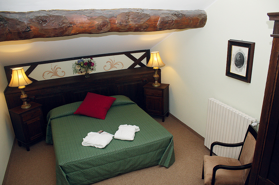 18 m² - pokoj s manželskou postelí či 2 samostatnými lůžky, sociální zařízení, zřídka balkon či francouzské okno