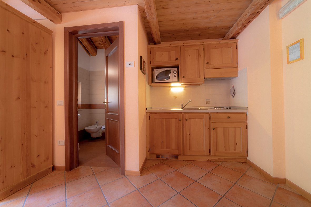 22 m² - obývací pokoj s kuchyňským koutem a rozkládacím gaučem pro 2 osoby, sociální zařízení, balkon či terasa