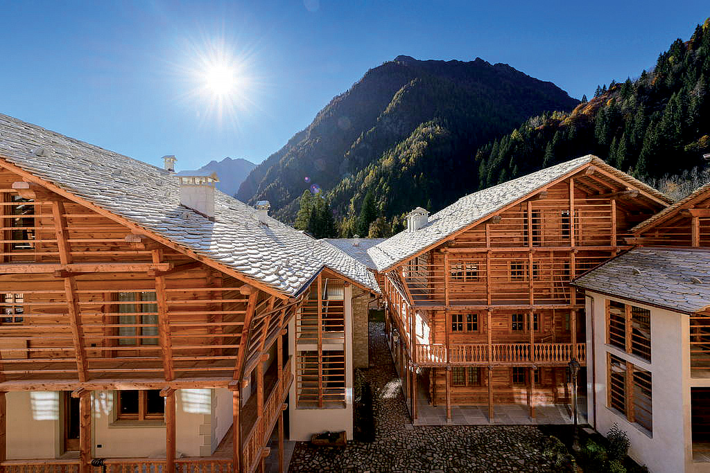 velmi kladně přijatá, jen nedávno nově postavená kapacita v typicky horském stylu "Walser" v kombinaci dřeva a kamene