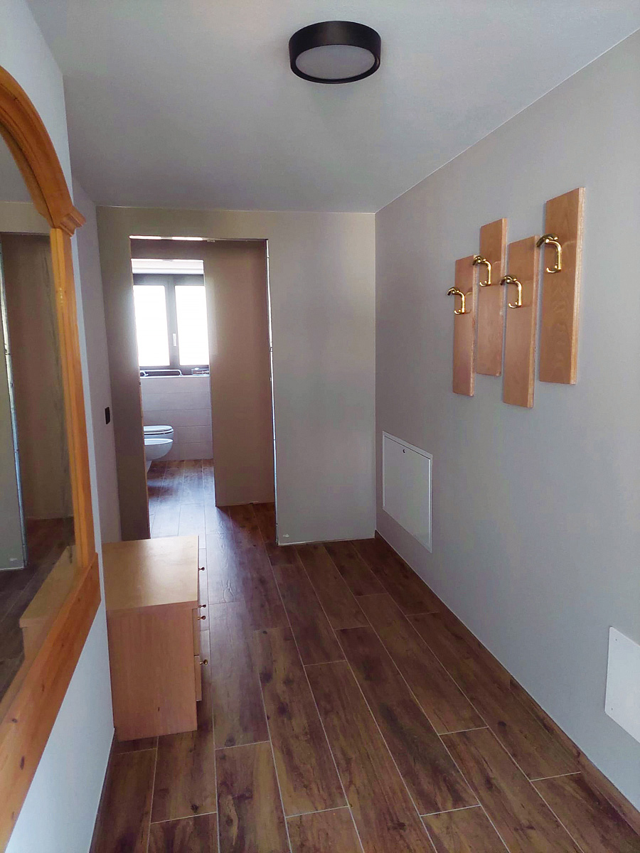 60 m² - 1 ložnice s manželskou postelí, 1 ložnice s 2 samostatnými lůžky, obývací pokoj s kuchyňským koutem a rozkládacím gaučem pro 1 osobu, 2x sociální zařízení, 2x balkon z toho 1x s panoramatickým výhledem