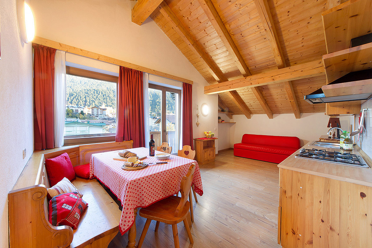 Andalo, centrum - 600 m, skiareál Paganella - 800 m, skibus - 200 m