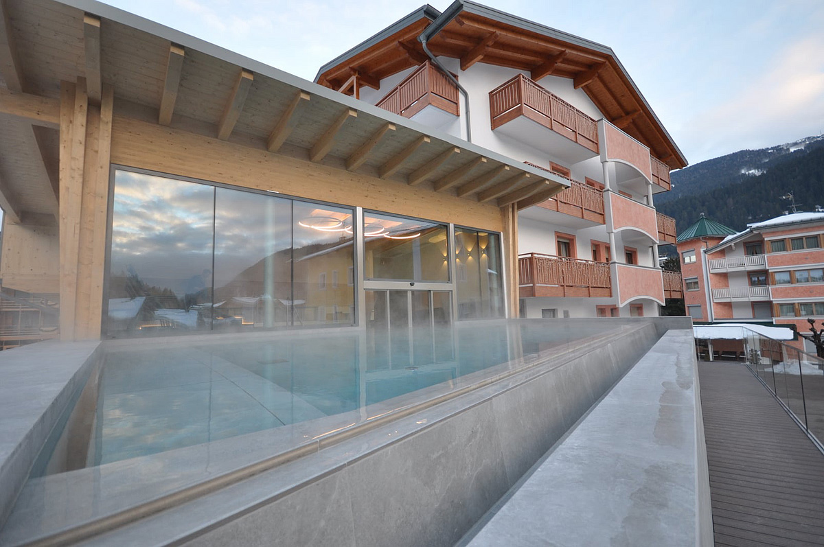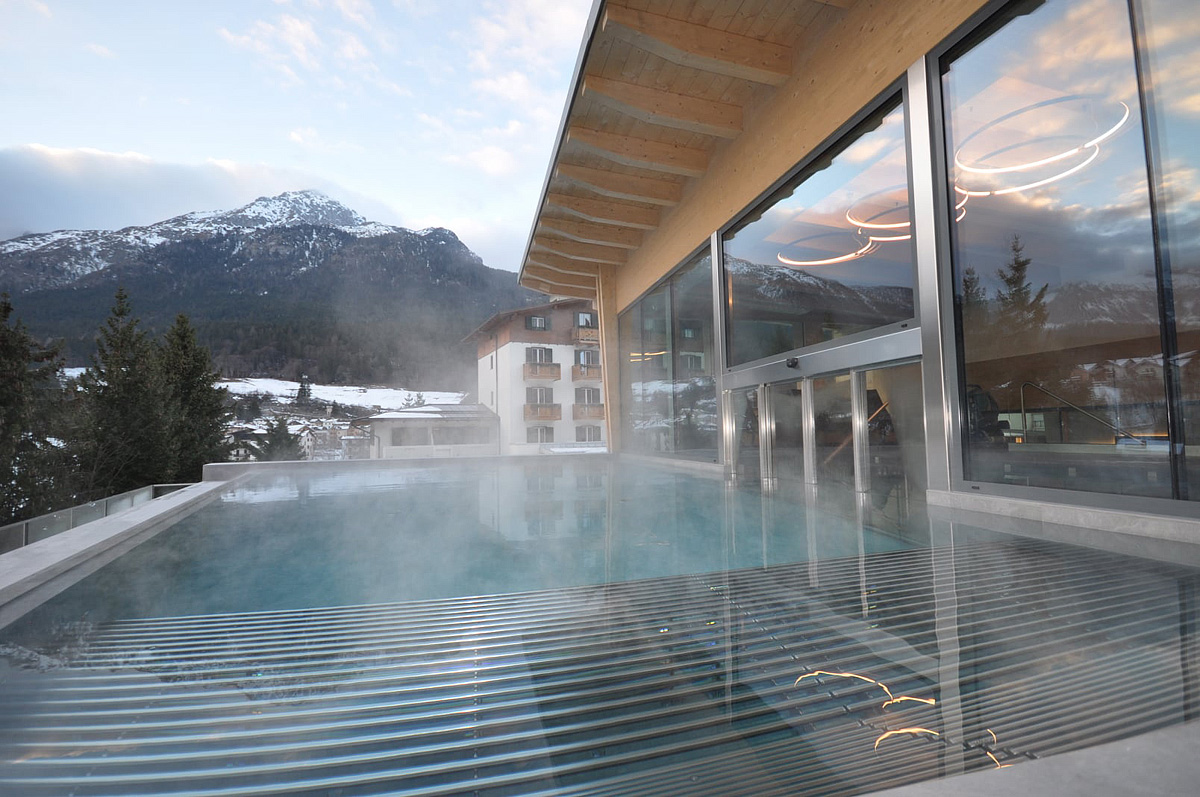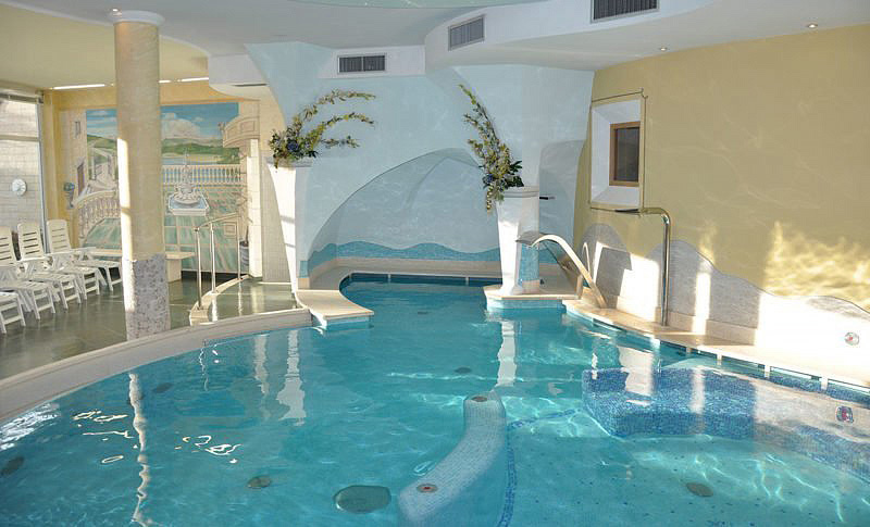 bazén 40 m², bazén 50 m s venkovní a krytou částí#, panoramatická sauna pro cca 10 osob#, pára pro cca 8 osob#, emocionální sprchy#, relaxační koutek s lehátky#, relaxační koutek s lehátky, masáže*#; posilovna biliár*, stolní fotbal*, videohry*; služby označené # jsou v moderní oddělené části přístupné pouze dospělým osobám