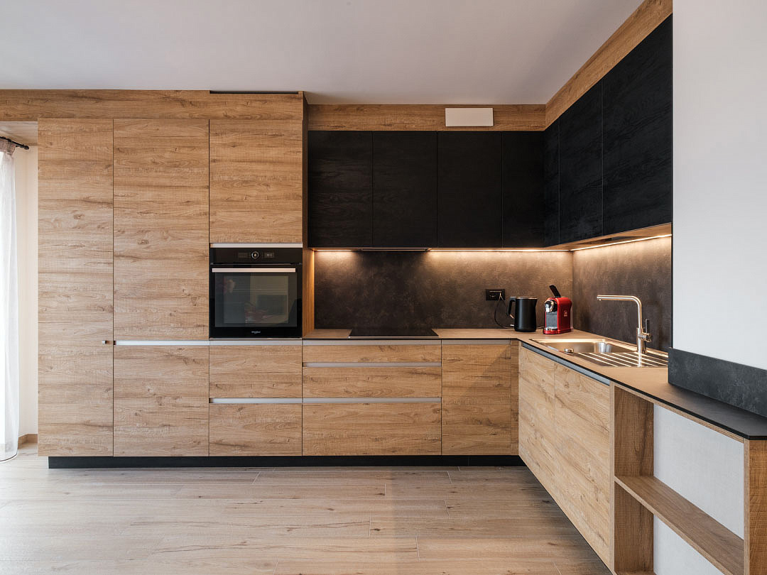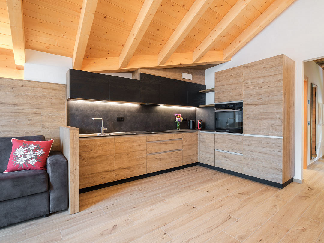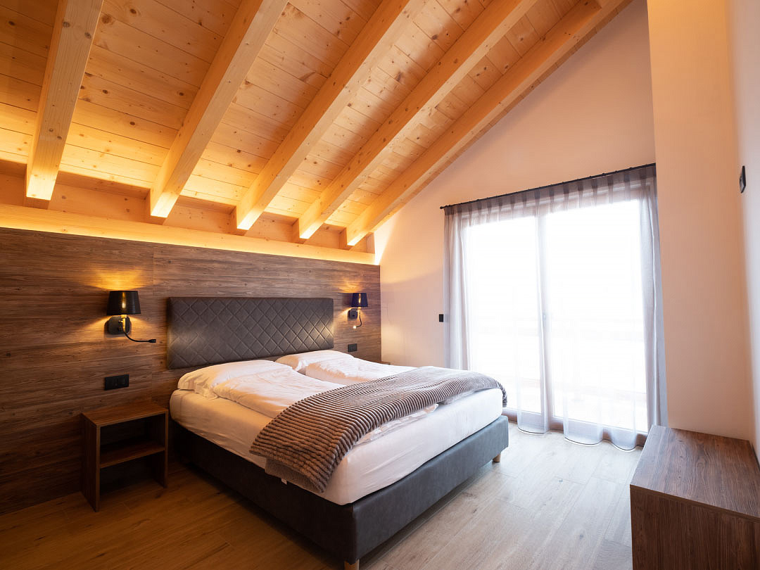 80 m² - 2 ložnice s manželskou postelí či 2 samostatnými lůžky, obývací pokoj s kuchyňským koutem a rozkládacím gaučem pro 2 osoby, 2x sociální zařízení, velký balkon s panoramatickým výhledem