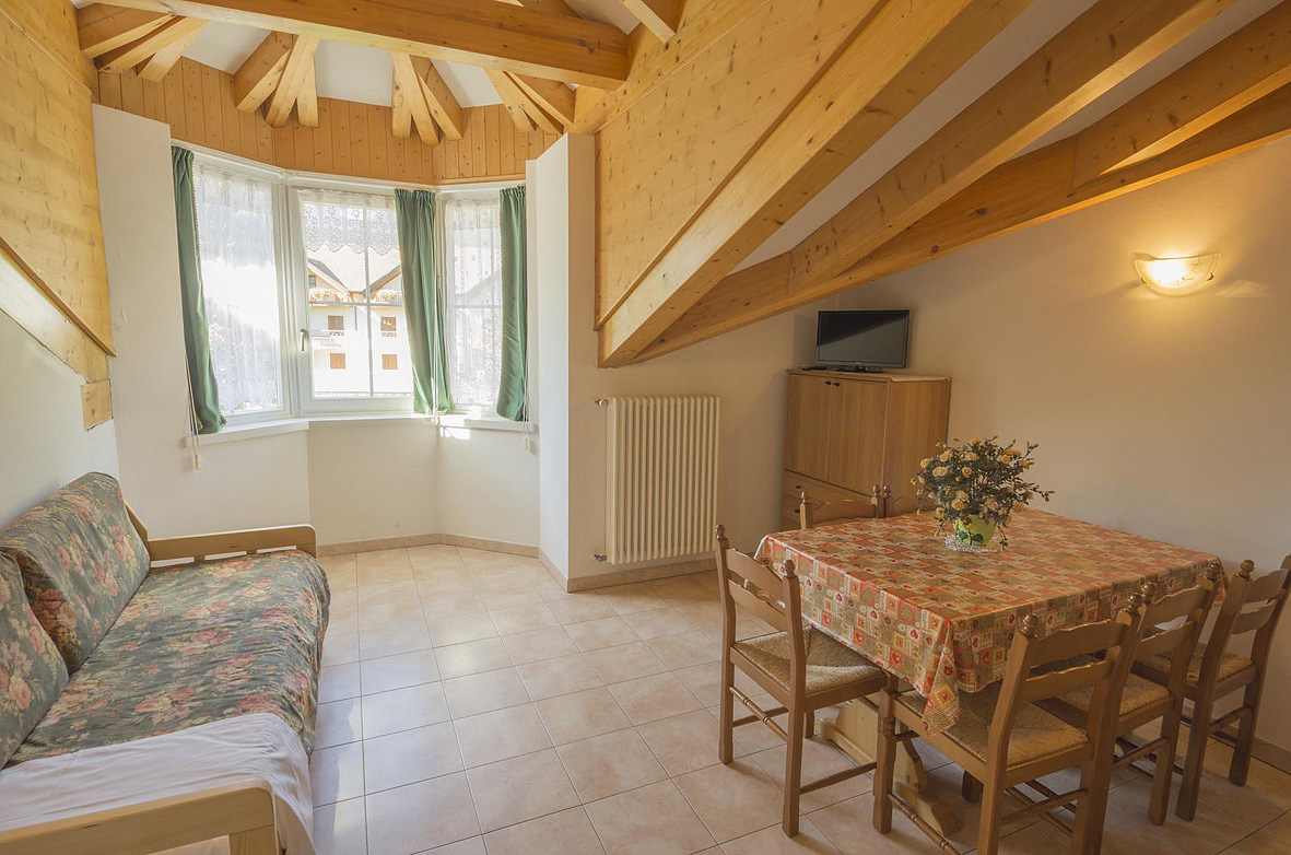 trilo 4+2 - 55 až 65 m² - 1 ložnice s manželskou postelí, 1 ložnice se 2 samostatnými lůžky, obývací pokoj s kuchyňským koutem a rozkládacím gaučem až pro 2 děti do nedovršených 15 let, sociální zařízení, balkon (s výjimkou 1 apartmánu)