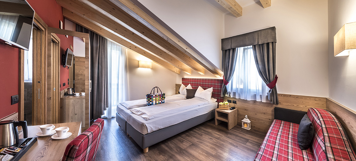50 m² - 2 navzájem propojené pokoje typ Active, 5. a 6. lůžko formou rozkládacího gauče či 2 samostatných lůžek pro děti do nedovršených 12 let, 2x sociální zařízení
